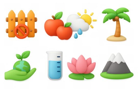 Chemical laboratory 3D icons. Science Illustration - lab coat, test tube, molecule, flask, microscope, atom model, scientific equipment, chemistry hazard