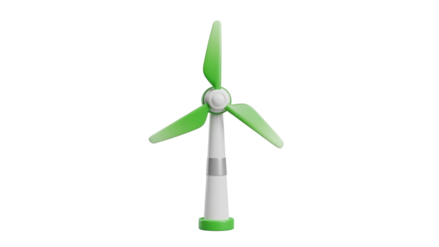 3D Renewable Energy Wind Turbine Icon, Green Tech, isolated on white background