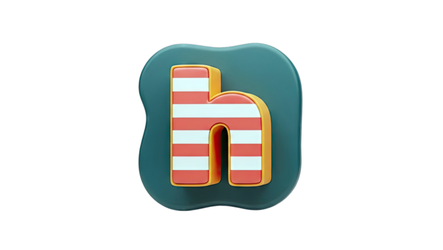 3D Rendered Lowercase Letter 'h' with Red and White Stripes