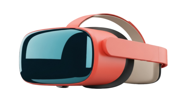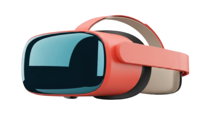 Pink VR headset isolated PNG on transparent background, virtual reality device for gaming and immersive experiences, modern tech gadget