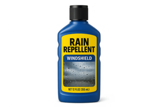 Rain repellent windshield washer fluid bottle isolated on transparent background