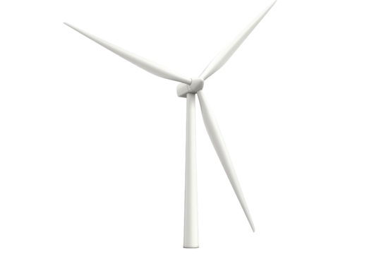 Transparent wind turbine on white background for renewable energy projects