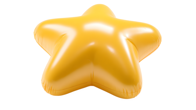 Soft inflated 3d star shape with rounded points in yellow color on white background