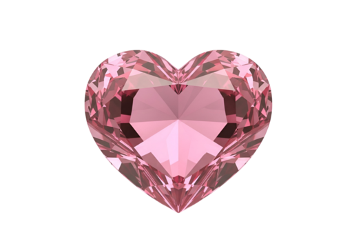 A radiant, heart-shaped pink gemstone, exquisitely detailed and set against a black backdrop.