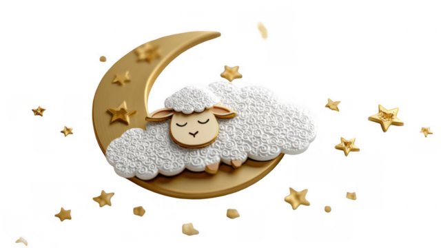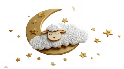 Sheep sleeping on moon with stars