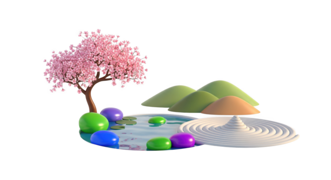 Stylized digital zen garden illustration evoking tranquility and serenity