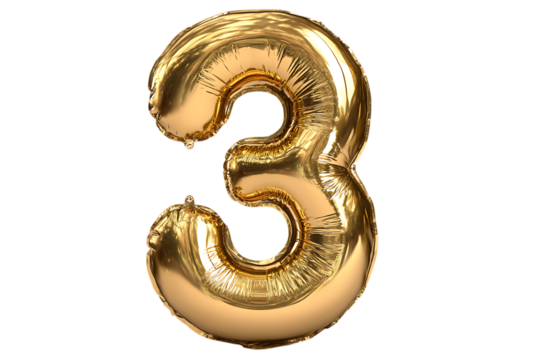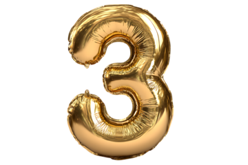 Gold number three balloon on black background