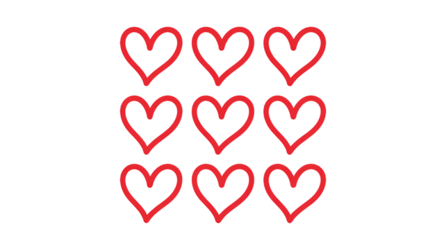 Cute red hearts in 3x3 grid: minimalistic love symbols