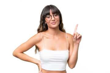 Young caucasian woman over isolated background showing and lifting a finger in sign of the best