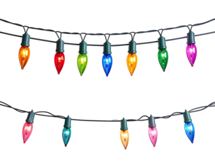 Green cord with 7 clear christmas lights isolated on transparent background