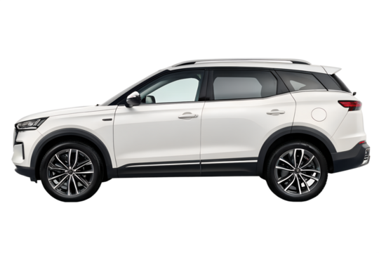 White Sport Utility Vehicle Side View on Transparent Background