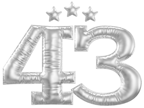 The shape of the number 43 is made of various kinds of leaves isolated on transparent background. suitable for birthday, anniversary and memorial day templates