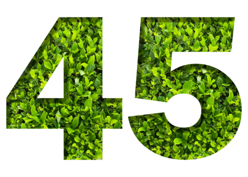 number 45 from green leaves  isolated on transparent background. suitable for birthday, anniversary and memorial day templates.