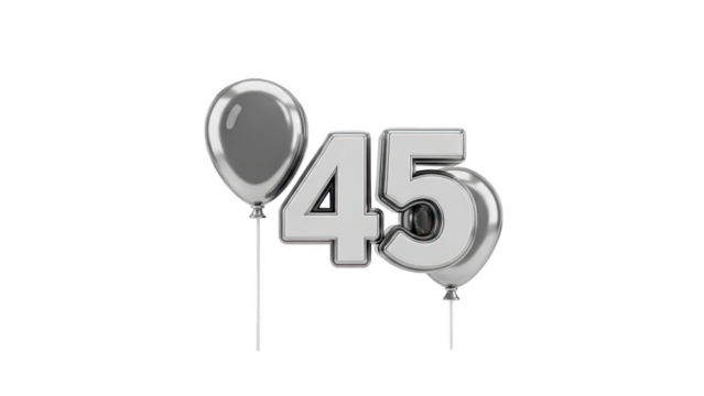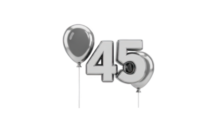 Rose gold foil balloons forming the number forty five percent isolated on transparent background