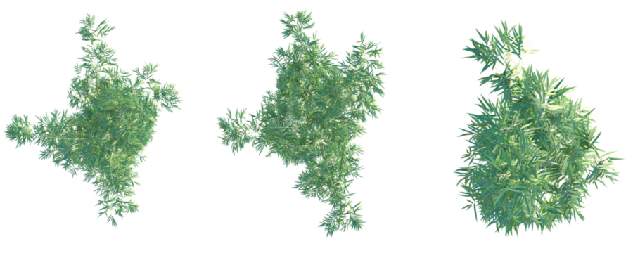 Bambusa textilis Tree. Plan top view. 4k cutout transparent background