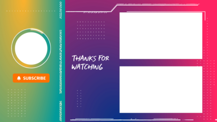 Modern and colorful YouTube animation end screen template in 4K resolution. Features subscribe button, placeholders for videos and profile picture. Alpha channel included for easy integration.