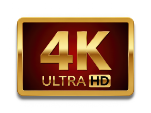 Premium golden 4k ultra hd logo symbolizing high definition video quality isolated on transparent background