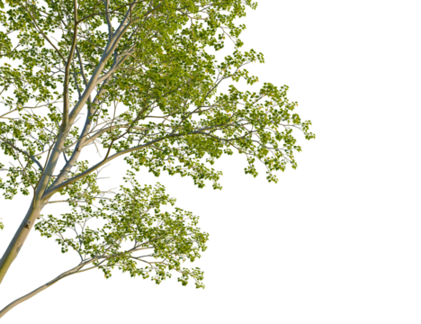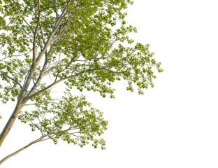 Cornus controversa tree corner view, cutout, isolate, 4k PNG, Isolated tree with green leaves on transparent background for creative design projects, evoking a sense of nature and serenity.