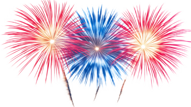 Fourth of july celebration graphic with fireworks on transparent background