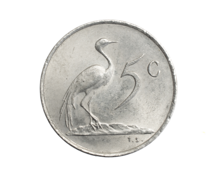 Isolated png photo of 5 Belgium francs 1993 nickel bronze coin of Baudouin 1 ruler on transparent background.