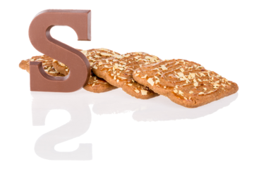 Ginger nuts with chocolate letter S at Dutch children's event Sinterklaas