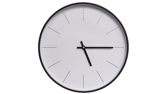 Minimalist White face and Black frame Wall Clock on White background - Perfect for Time Management and Scheduling Concepts - 17.15, 5.15