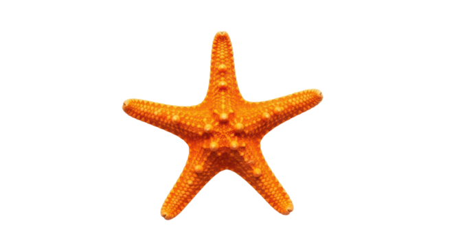 Red starfish with textured surface highlighting marine life, isolated on a transparent background, summer and ocean design element