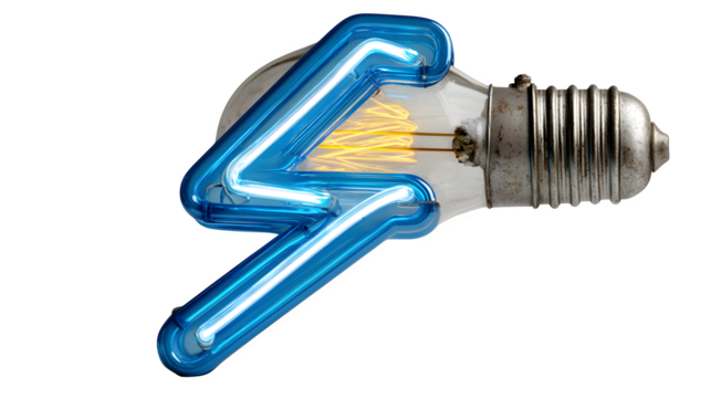 A glowing neon lightning bolt in electric blue, symbolizing energy and power, set against white --ar 16:9 --v 7.0 --s 750