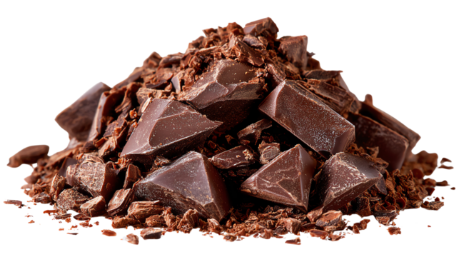 Chocolate Chunks: A close-up shot of a heap of rich, dark chocolate chunks, inviting the senses with its textured surface and deep color.