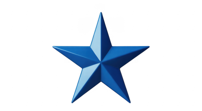 Blue star shape with five points isolated on a transparent background