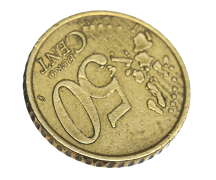50 Euro Cent Coin Money, macro isolated on transparent background