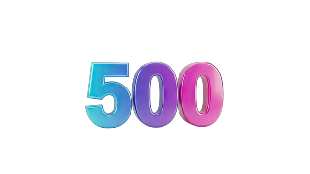 3D Glossy 3D Number 500 with Gradient Colors on transparent background