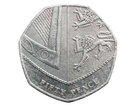 fifty pence coin isolated on white background