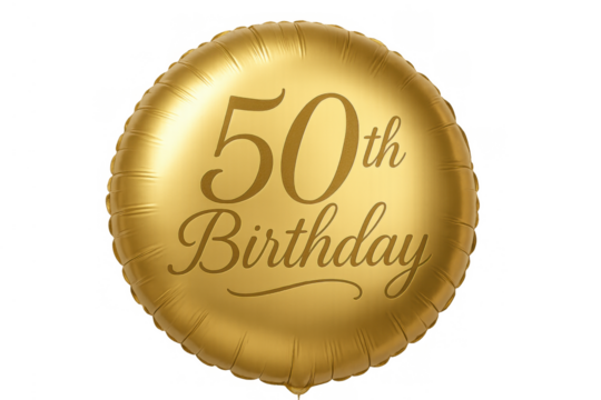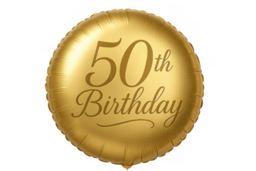 Blue number fifty foil balloon for celebrating 50th birthday, anniversary, or special event, isolated on transparent background