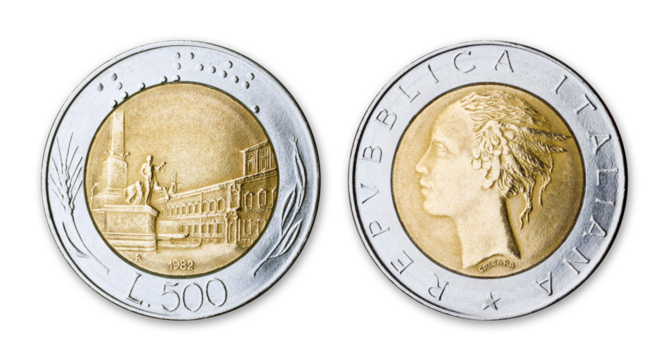 Part of the banknote denomination of 500 euros in close up, isolated on a white background to create business concepts.