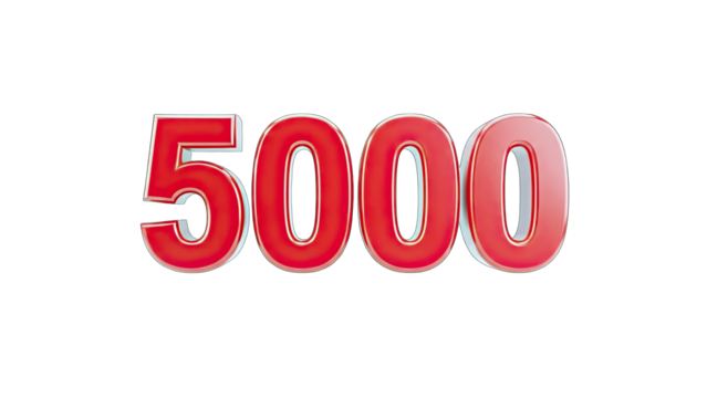Shiny gold volumetric text displaying '5000', isolated on a white background