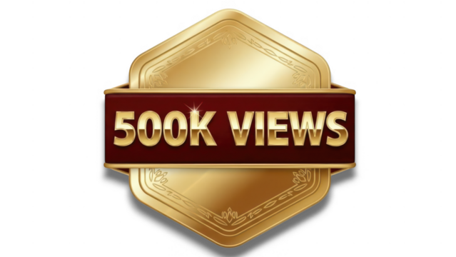 Golden 500k views achievement badge for social media milestone celebration isolated on transparent background