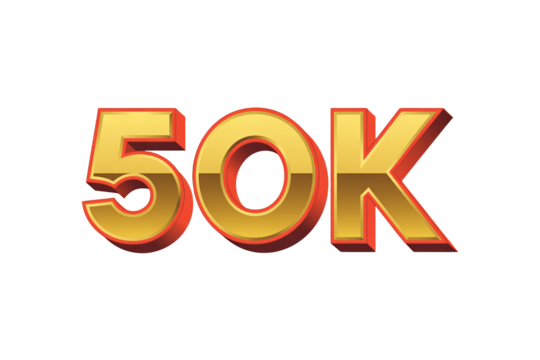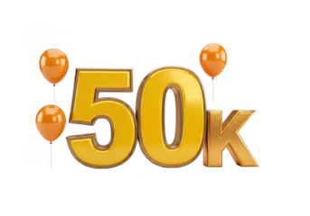 Celebrate reaching 50k followers with this shiny golden 3D numeral, perfect for social media milestones and achievement announcements.