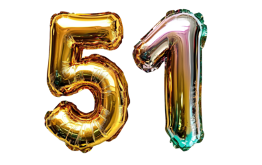 Number fifty one foil shiny metallic isolated on white or transparent background