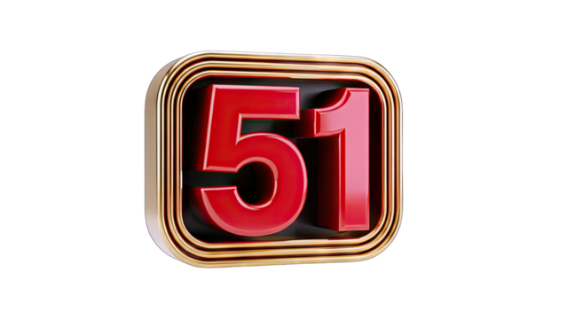 Gold glossy 3d number 51