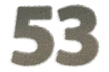 The shape of the number 53 is made of sand isolated on transparent background. Suitable for birthday, anniversary and Memorial Day templates