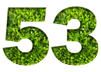 number 53 from green leaves  isolated on transparent background. suitable for birthday, anniversary and memorial day templates.