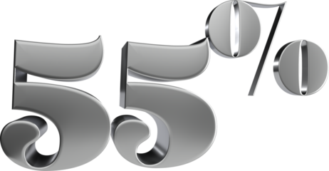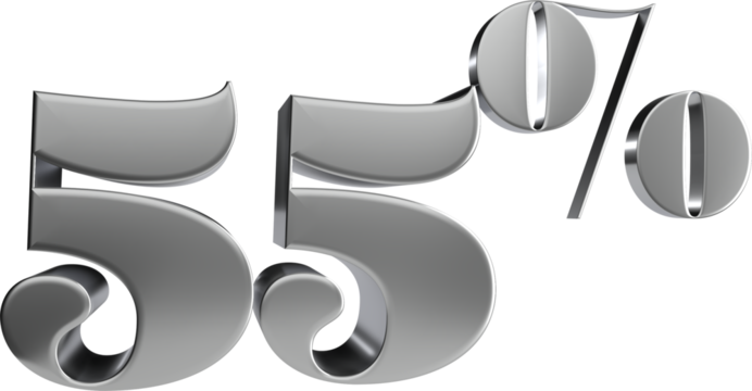 Bright transparent numeric graphic displaying 55 percent