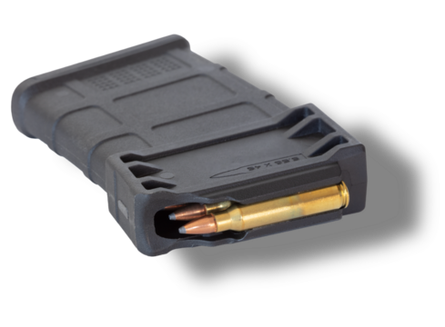 Drop shadow below a loaded rifle magazine for 5.56 caliber