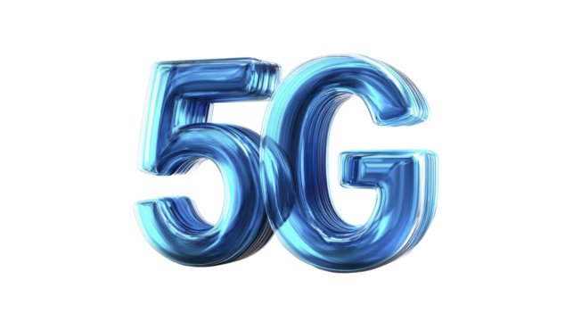 3D metallic blue "5G" symbol on a white background, representing the fifth generation of mobile network technology.