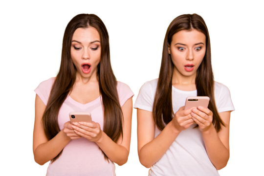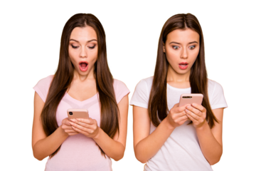 woman with mobile phone. Isolated png backgroundless cutout of a girl with a cell phone