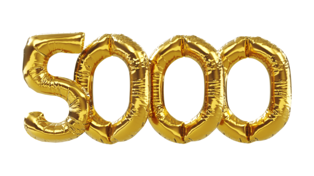 3D render of balloon number five thousand isolated on white background. Party decoration golden balloons. Anniversary