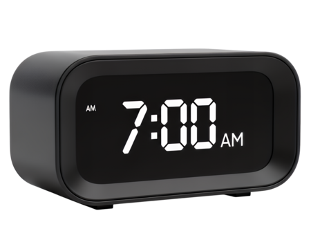 Wake up to success with this modern alarm clock displaying 7 AM startup