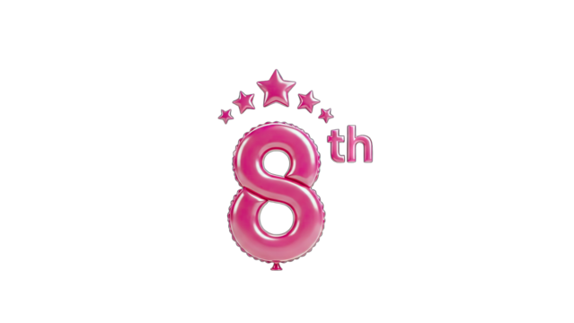 Pink Balloon Number 8 with Stars - 8th Anniversary