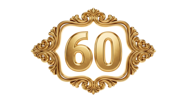 Decorative 60 number design on transparent background